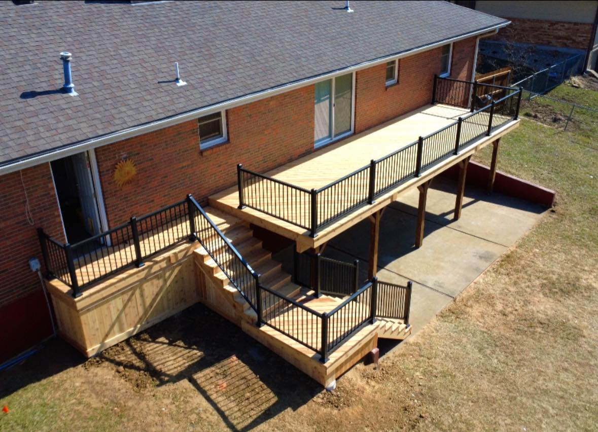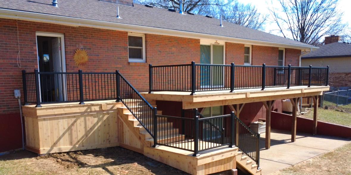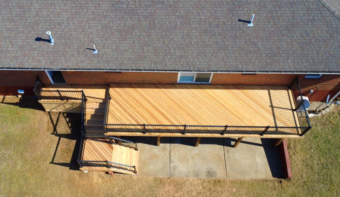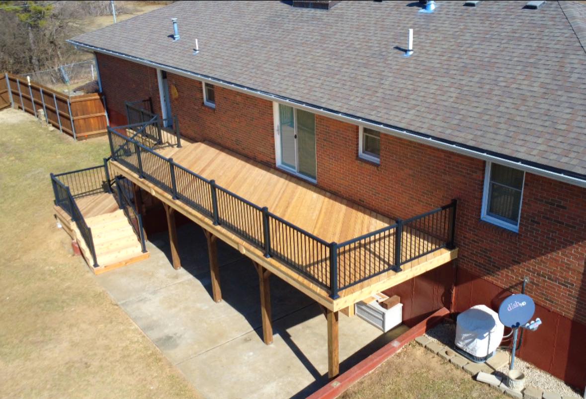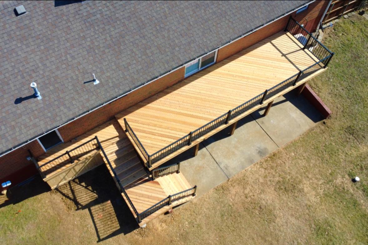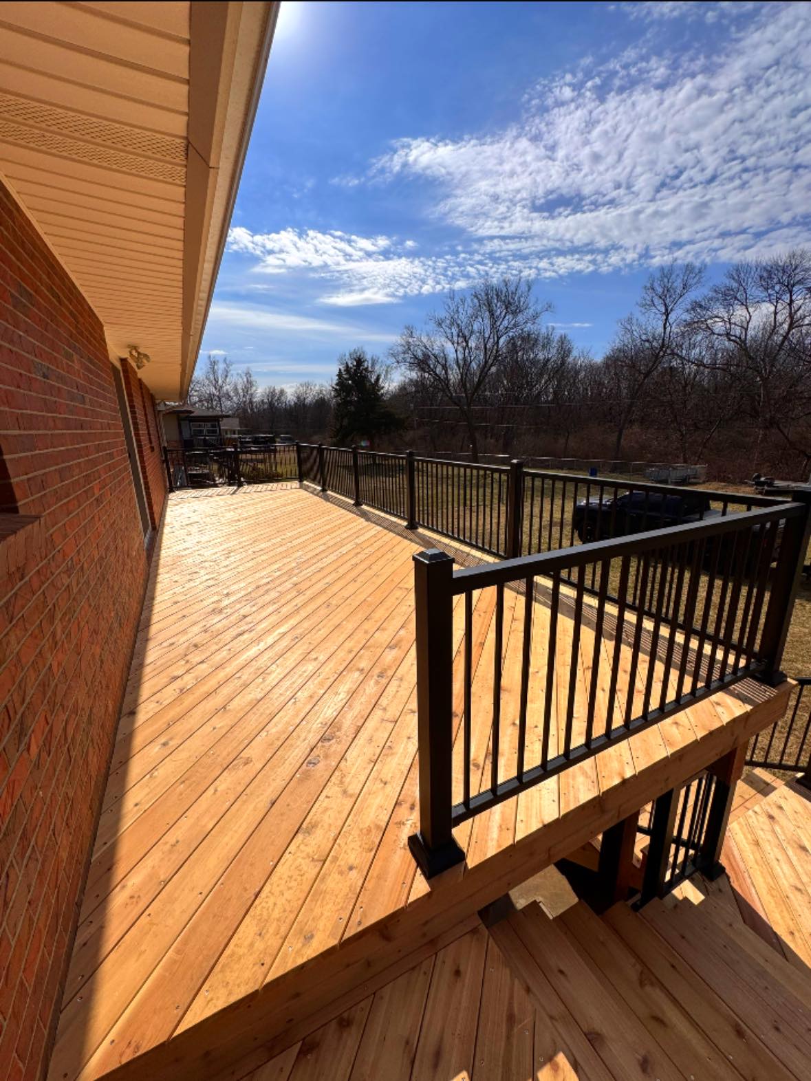 With beautiful February weather on our side, we went ahead and built another one! This project features Red Cedar decking paired with sleek TimberTech aluminum railing, creating a clean, durable, and eye-catching outdoor space.