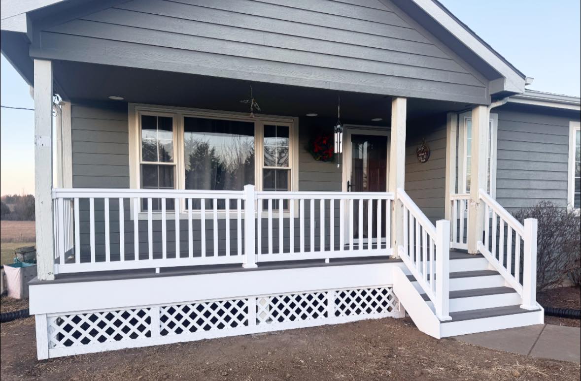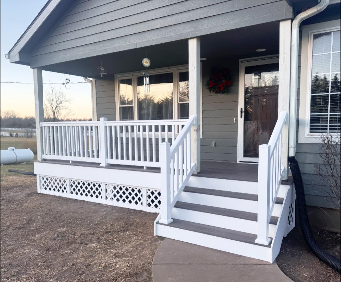 We’re thrilled to announce that we’ve wrapped up our final project of 2025 and it’s a beauty! This custom front porch upgrade features Trex composite decking paired with premium vinyl railing, delivering a clean, low-maintenance finish that’s built to last.