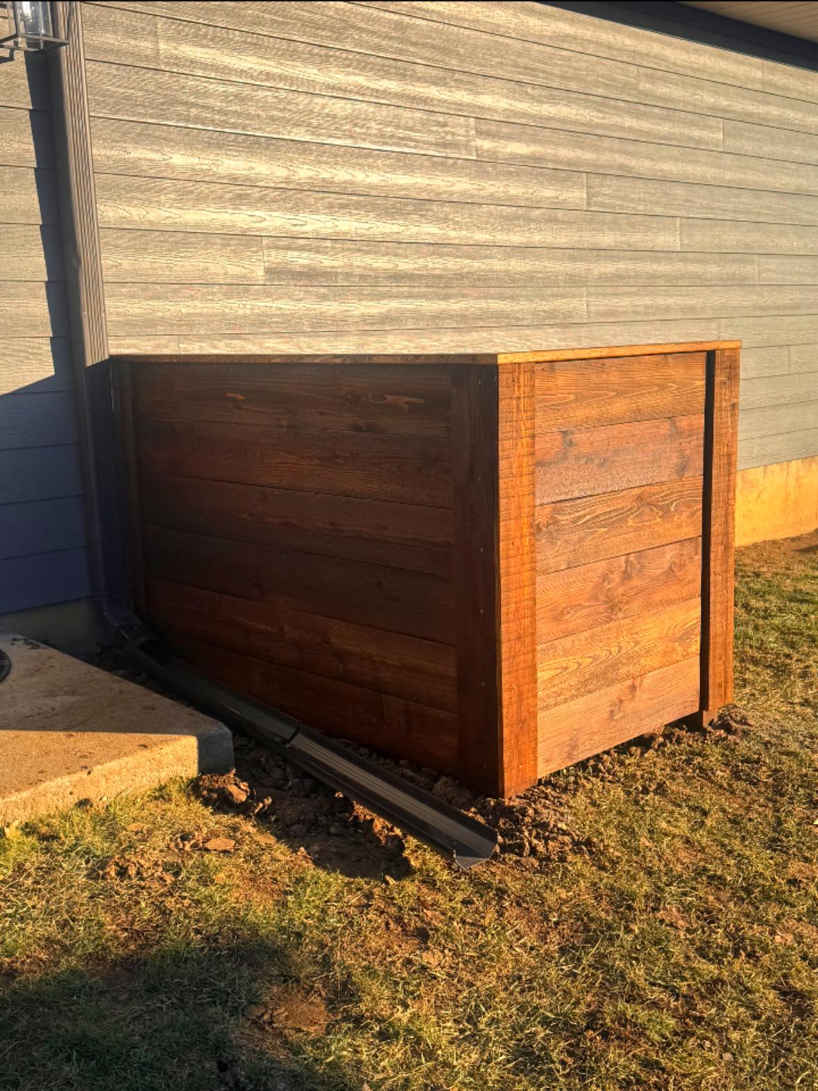 Clean, intentional structures that help organize functional equipment and reduce visual clutter in the yard. Designed to keep necessary elements integrated into the overall landscape aesthetic.